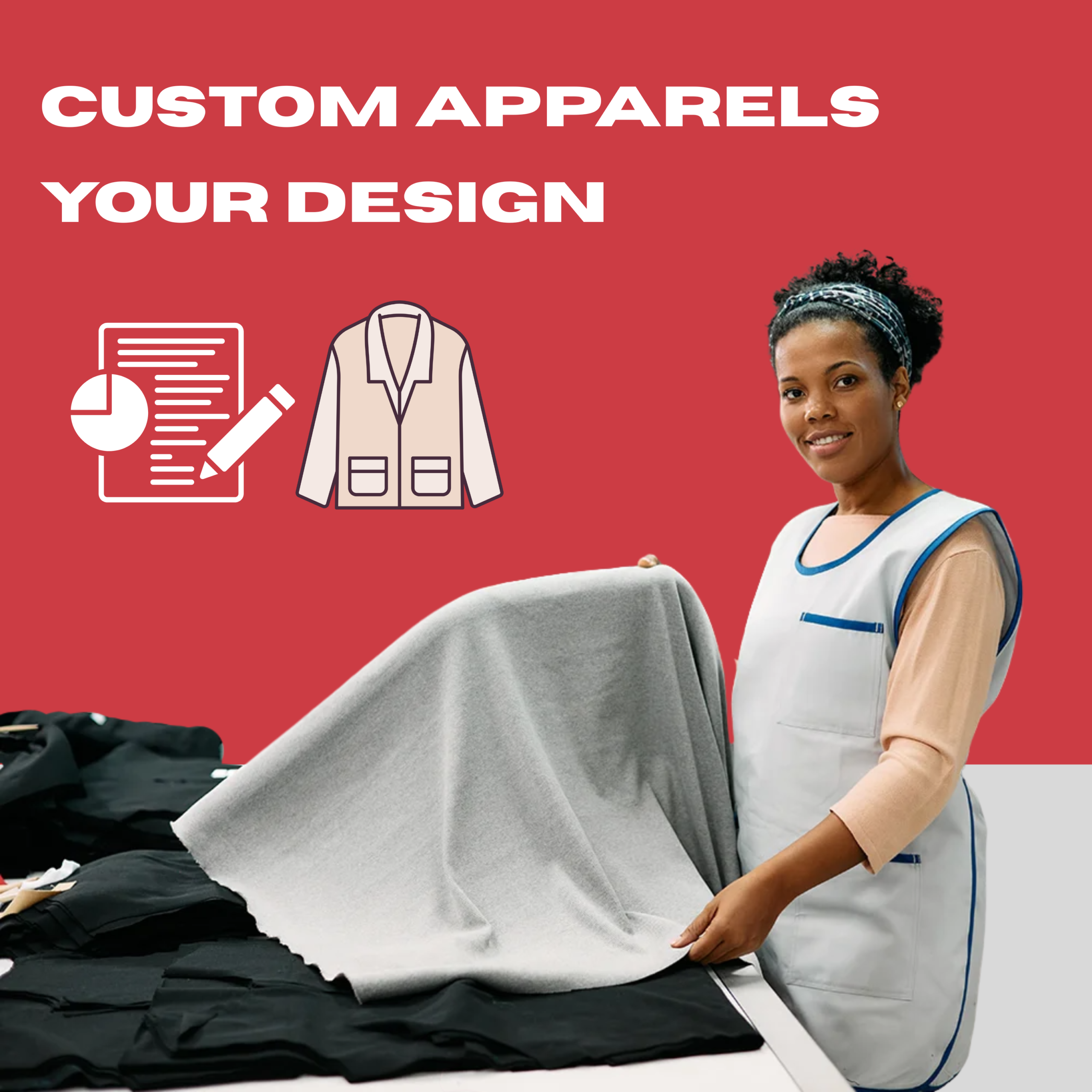 We produces clothing based on the client’s design, fabric choice, colors, sizes, and specifications. The process usually includes cutting, stitching, printing, embroidery, and finishing to create the final garment.